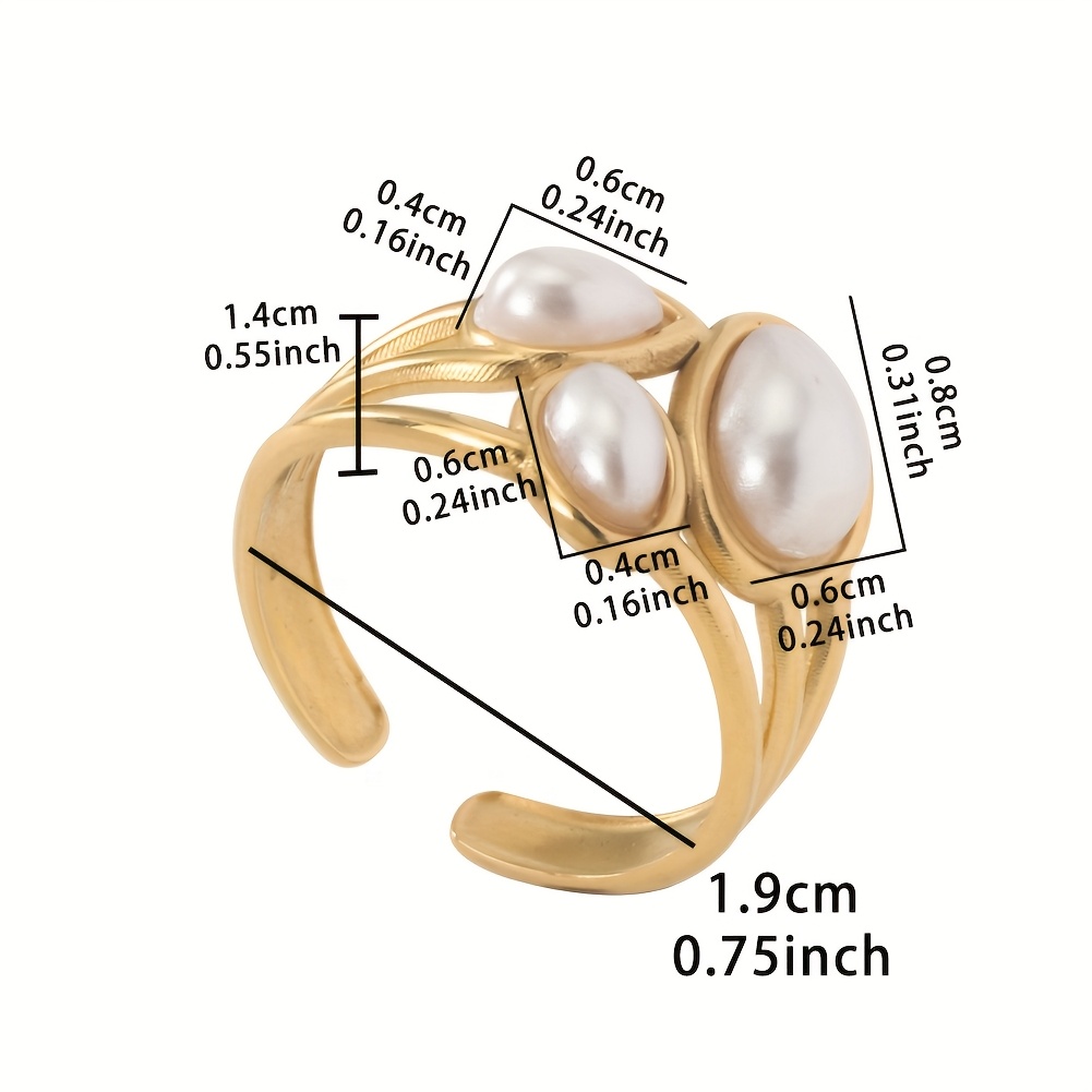 טבעת גיאומטרית אחת לנשים מפלדת אל-חלד עם 3 פניני חיקוי – טבעת יוקרתית בסגנון רטרו אלגנטי לחתונות וללבוש יומיומי