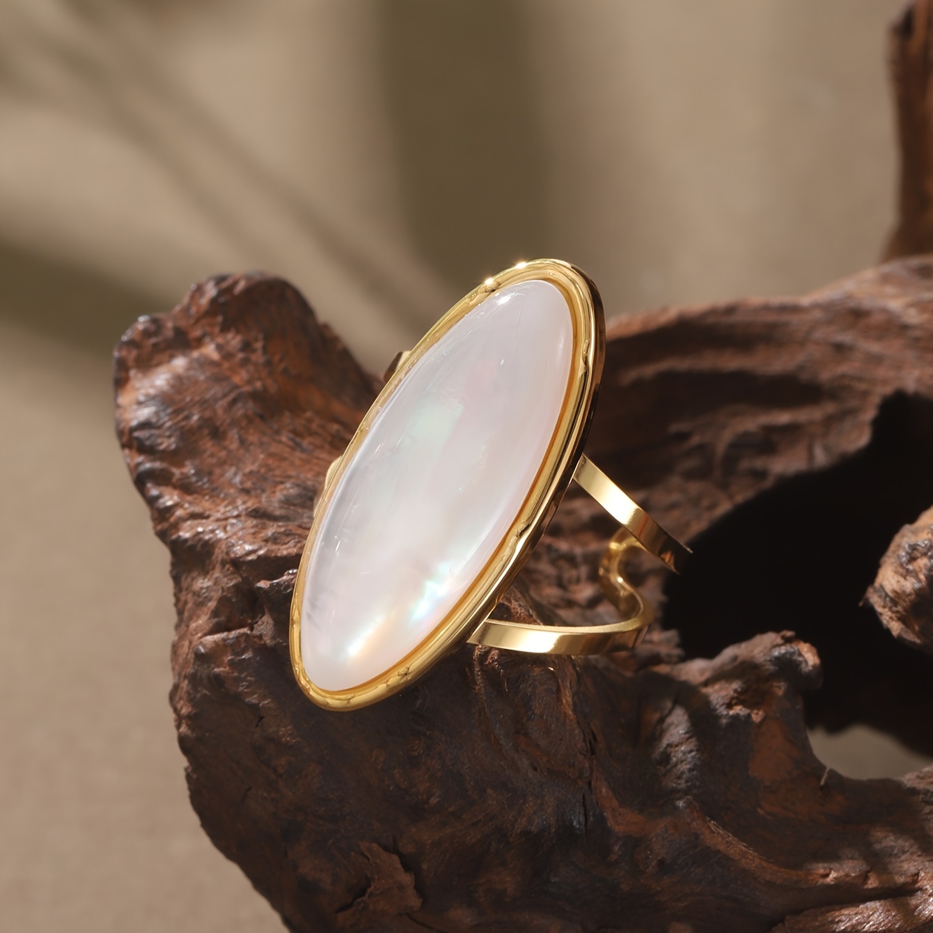 טבעת נירוסטה גיאומטרית שיקית עם שיבוץ שרף – מושלמת ללבוש יומיומי, מסיבות וחופשות – תכשיטי אופנה לנשים