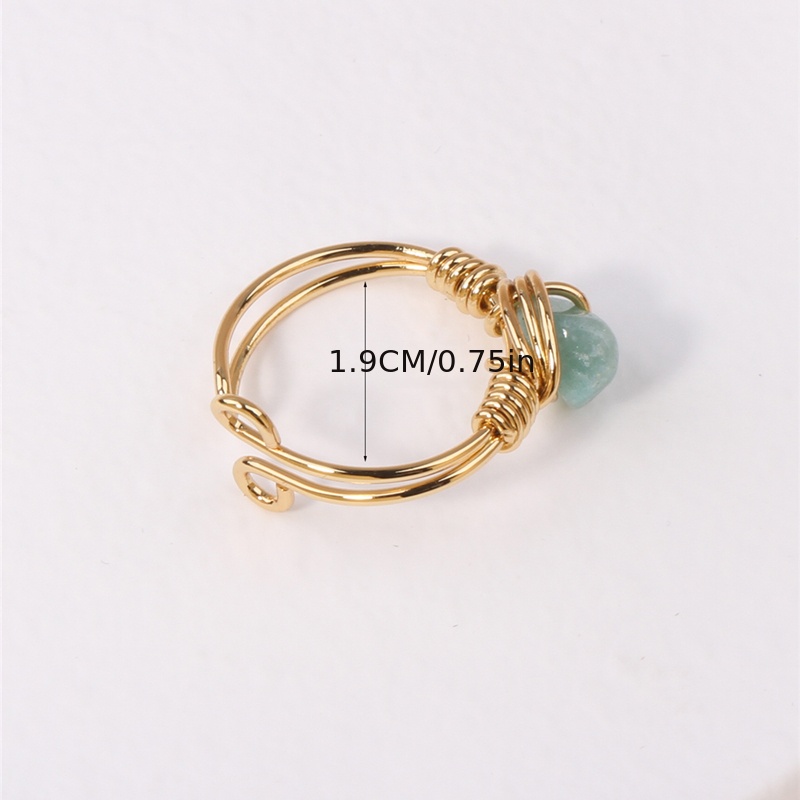 טבעות פתוחות לאבן טבעית אופנה לנשים עטוף בחוט אוונטורין עין נמר חצץ טבעת מסיבת חתונה תכשיטים