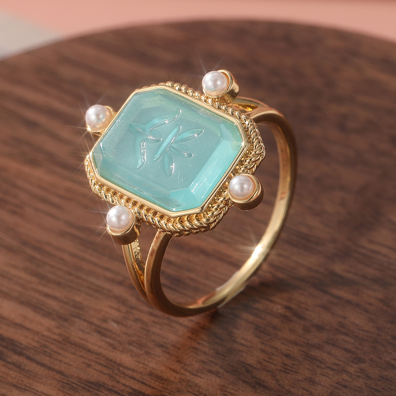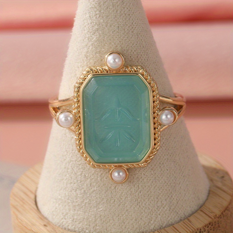 טבעת קריסטל כחולה בעבודת יד, אלגנטית ונצחית לנשים – בהשראת וינטג’, מתנה מושלמת לחג המולד